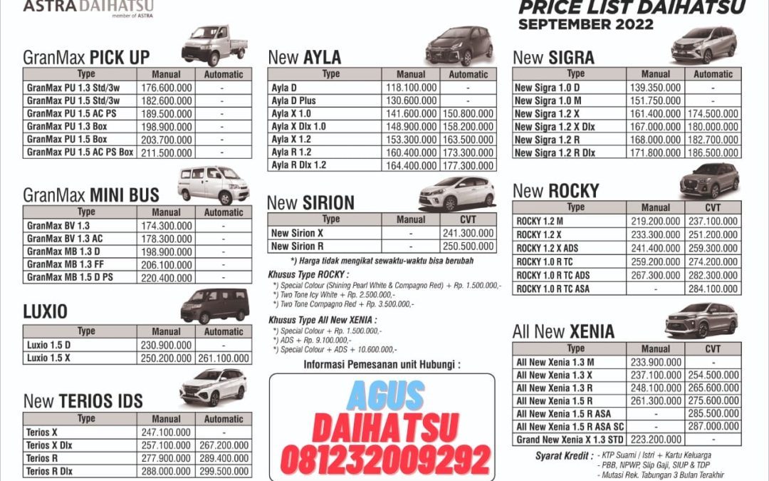 pricelist harga daihatsu september 2022 oleh Agus Mardianto | Sep 15, 2022 | 0 Komentar Kirim Komentar Batalkan balasanAlamat email Anda tidak akan dipublikasikan. Ruas yang wajib ditandai *Komentar * Nama * Email * Situs Web Simpan nama, email, dan situs web saya pada peramban ini untuk komentar saya berikutnya. Δ